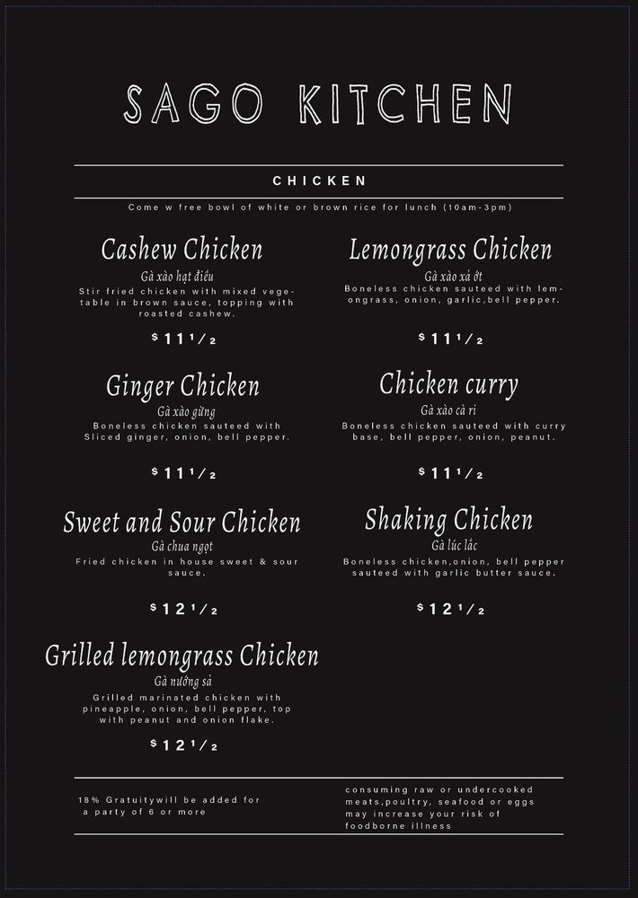 Welcome to Sago Kitchen, a delightful haven for Vietnamese cuisine nestled in Renton, WA. This trendy eatery offers a vibrant atmosphere perfect for casual dining or group gatherings. Sago Kitchen takes pride in its diverse menu, showcasing authentic dishes that highlight the rich flavors of Vietnam.
